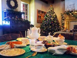 Family in town for the holidays? Stop by for a holiday tour! Tour the home beautifully decorated with fresh greens, ribbons, bows and sparkle of course!